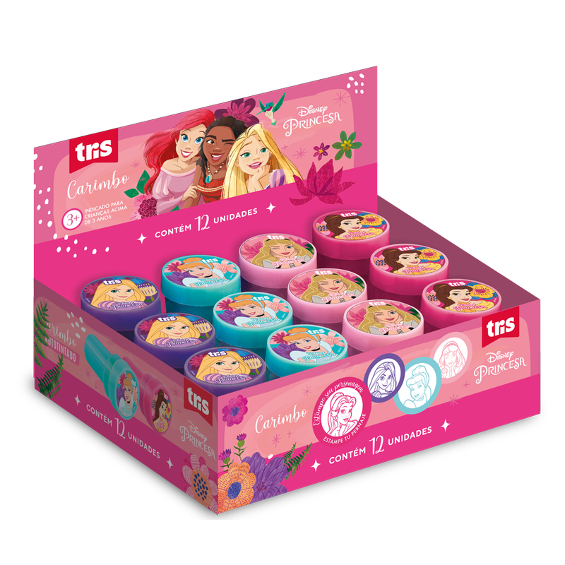 O carimbo Princesas é autotintado e possui reservatório interno de tinta. São 4 lindas estampas pra você escolher!